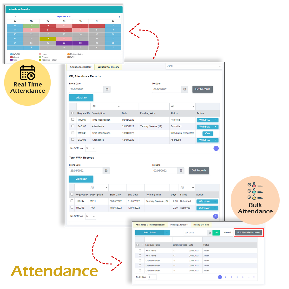 • Bulk upload of attendance through Excel for blue-collared workers.